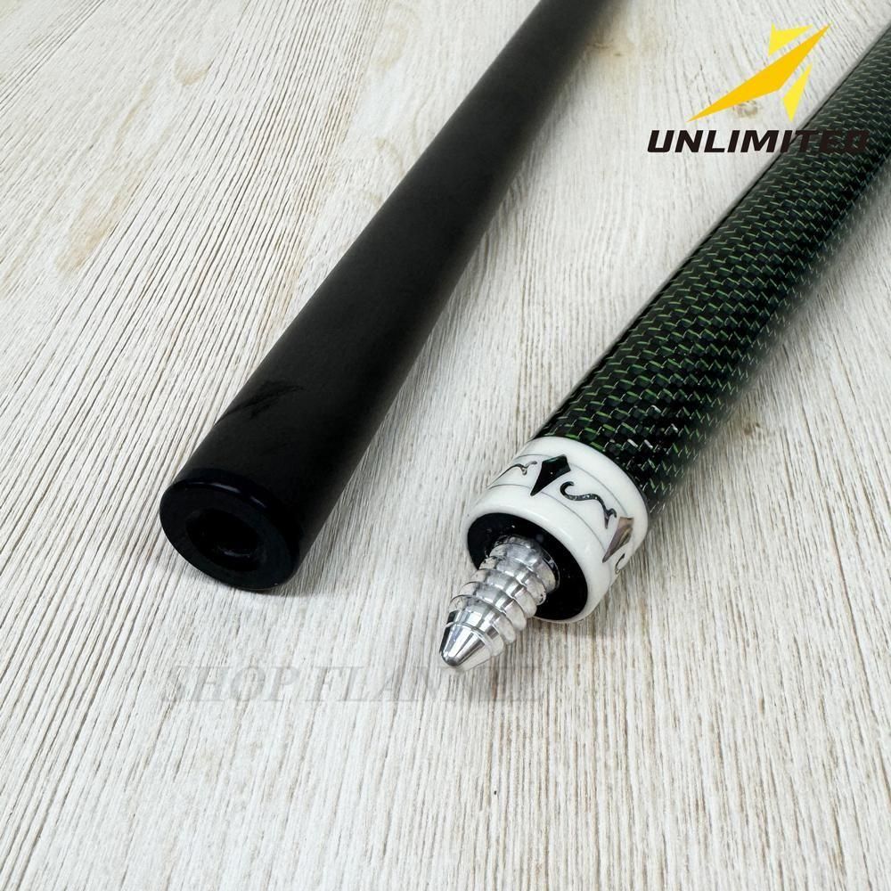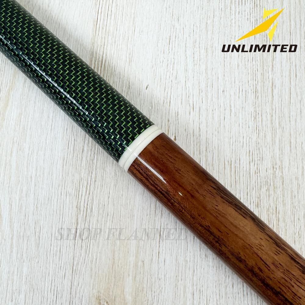 バットはフォアアームがカーボン、バットエンドがウッドでシャフトはプレイキューでも好評のダブルカーボンシャフトをジャンプキューに合うように改良してあります