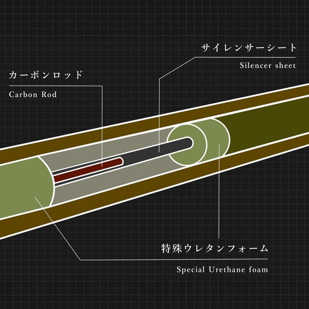 アンリミテッド独自のカーボンシャフトの中にカーボンロッドを内蔵したダブルカーボン構造